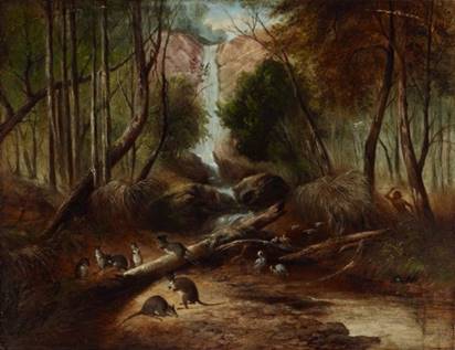 Their time in Tasmania occurred some fifteen years after the dreadful Black War, during which the original Tasmanians were virtually exterminated by the European settlers. The Tasmanian landscape was heavily altered by fire. There is a current debate about the extent to which this was done by the original inhabitants or by the settlers, or both. Skinner’s paintings, and those of another British-born artist, John Glover,